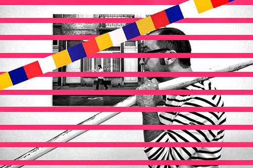 Comprenant le sens de la mise en abime lors de la performance du 24 et au regard du travail d’Emilio Lopez Menchero , je ne percevais pas la nécessité de présenter les photographies sur le réseau social Facebook en l’état. C’est pourquoi aerophagics contemporary s’est proposée de créer une nouvelle mise en abime en rapport du lieu d’exposition de ces photographies. Ce qui a donné la création de aerophagics contemporary trying to be “Michel M. trying to be “Emilio López-Menchero trying to be Cadere” et de aerophagics contemporary trying to be “Michel M. trying to be “Emilio López-Menchero trying to be Cadere” ( 2 ) devant la cimaise d’en face, (avec barre trouvée dans la cour, dit «le tuyau de décharge»), 2013.